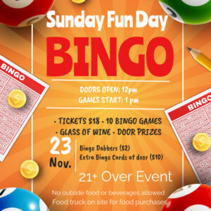 PURCHASE TICKET Sunday FUN-DAY BINGO! Door Opens *12pm Game* 1pm LIMITED TICKETS BEING ...