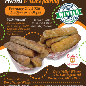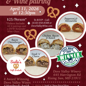 PURCHASE TICKET Pretzel Wraps & Wine pairing April 11th 12:30pm $25/person 4 Award Winning ...