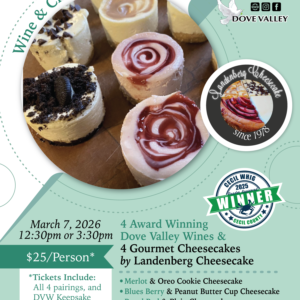 PURCHASE TICKET Wine & Cheesecake Pairing March 7th, 2026 12:30pm $25/person 4 Award Winning ...