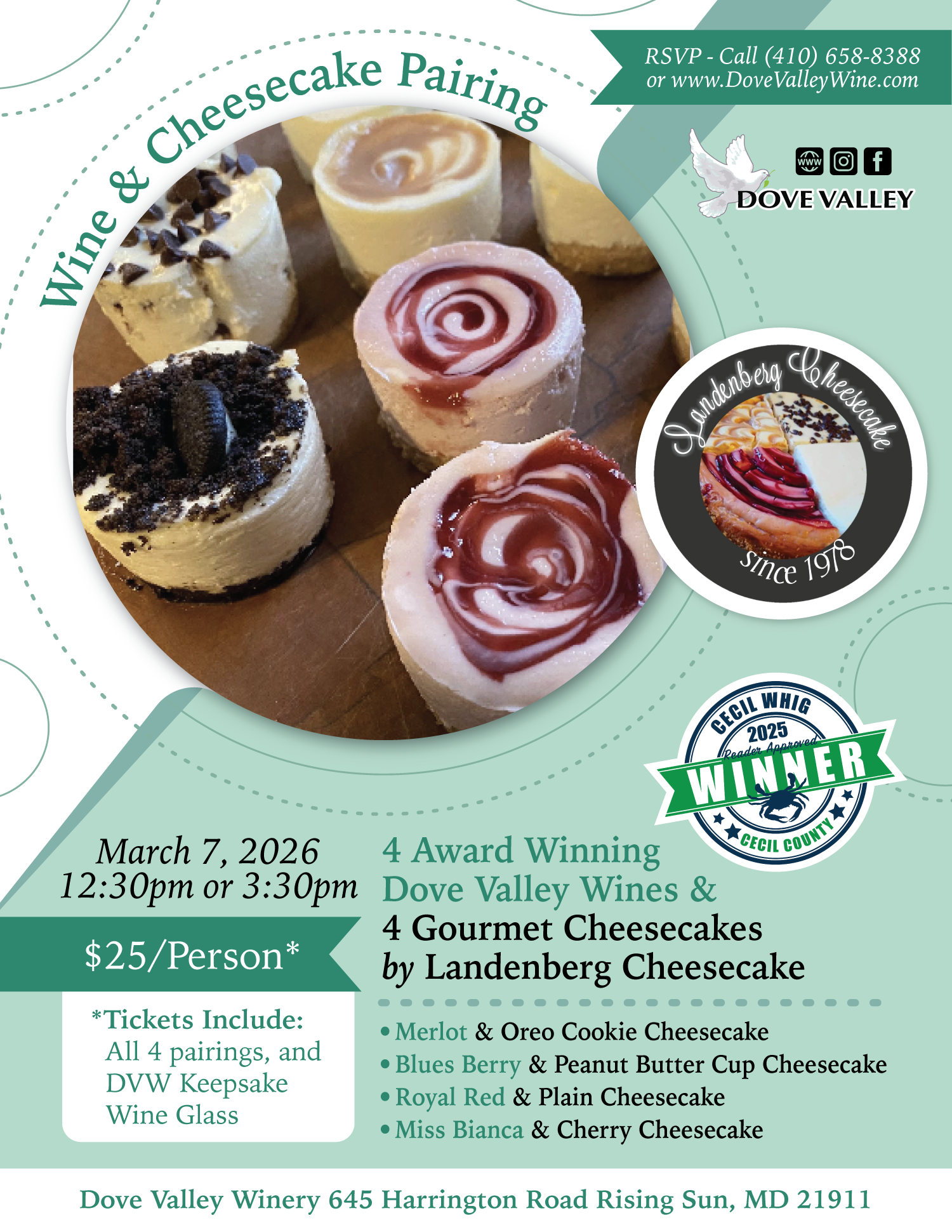 *Tickets include pairing and keepsake Dove Valley Wine Glass