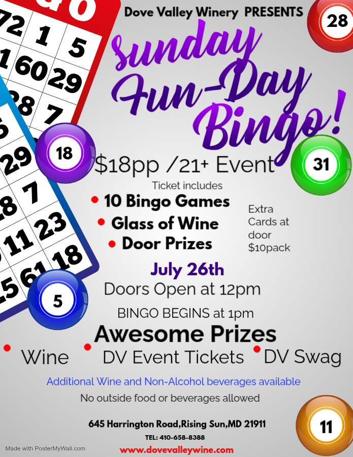Sunday FUN-Day BINGO *July 26th*Door 12pm *Game 1pm