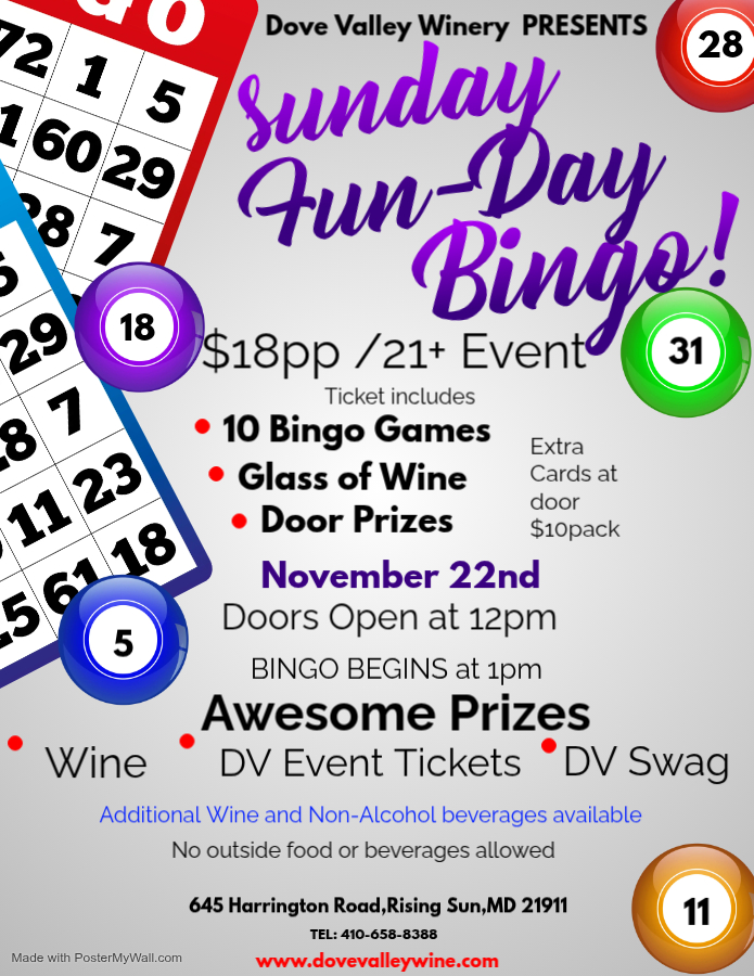 Sunday FUN-Day BINGO *November 22nd*Door 12pm *Game 1pm