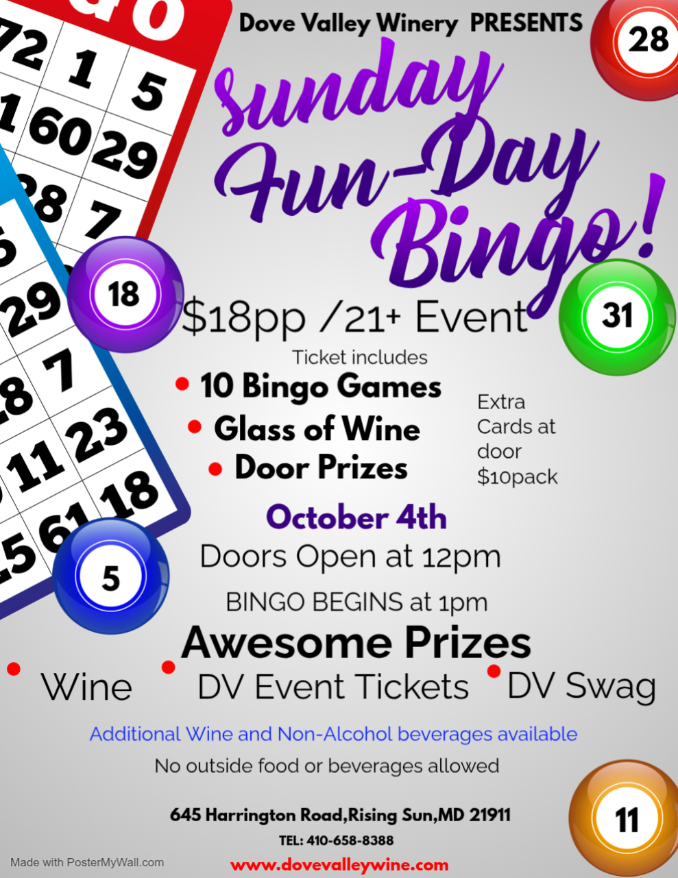 $18 per person includes 10 bingo games / a glass of wine or a wine slushie