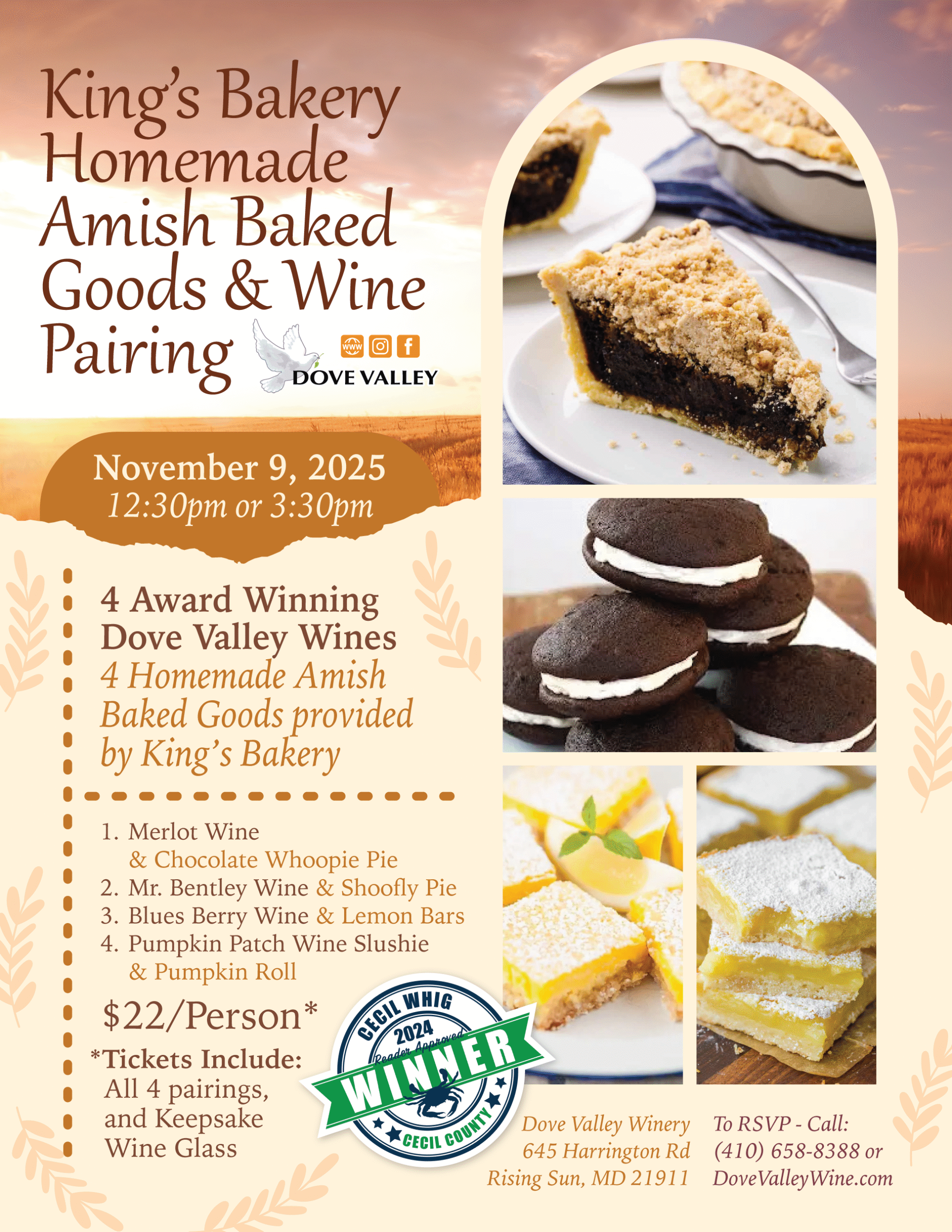 Homemade Amish Baked Goods & Wine pairing*Nov.9th*3:30pm