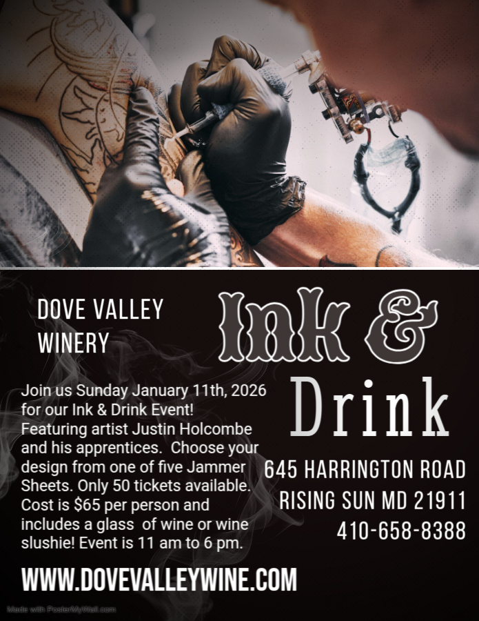 Join us Sunday January 11, 2026, for our Ink & Drink Event!