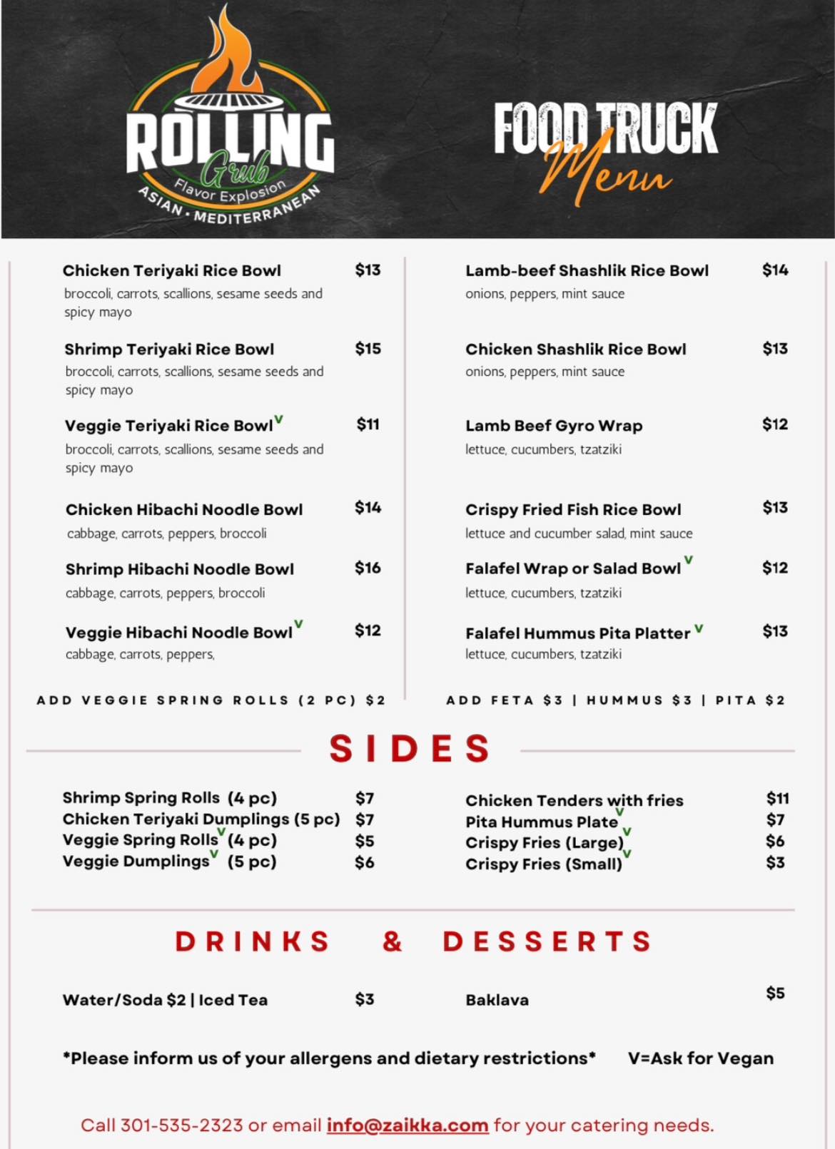 Rolling Grub Rolling Grub Flavor Explosion of Asian & Mediterranean Dishes + Add to Google Calendar + iCal export 00 days 00 hours 00 minutes 00 seconds Date 08 Mar 2026 Time 1:00 pm - 5:00 pm Category Food Truck Sundays Share this event