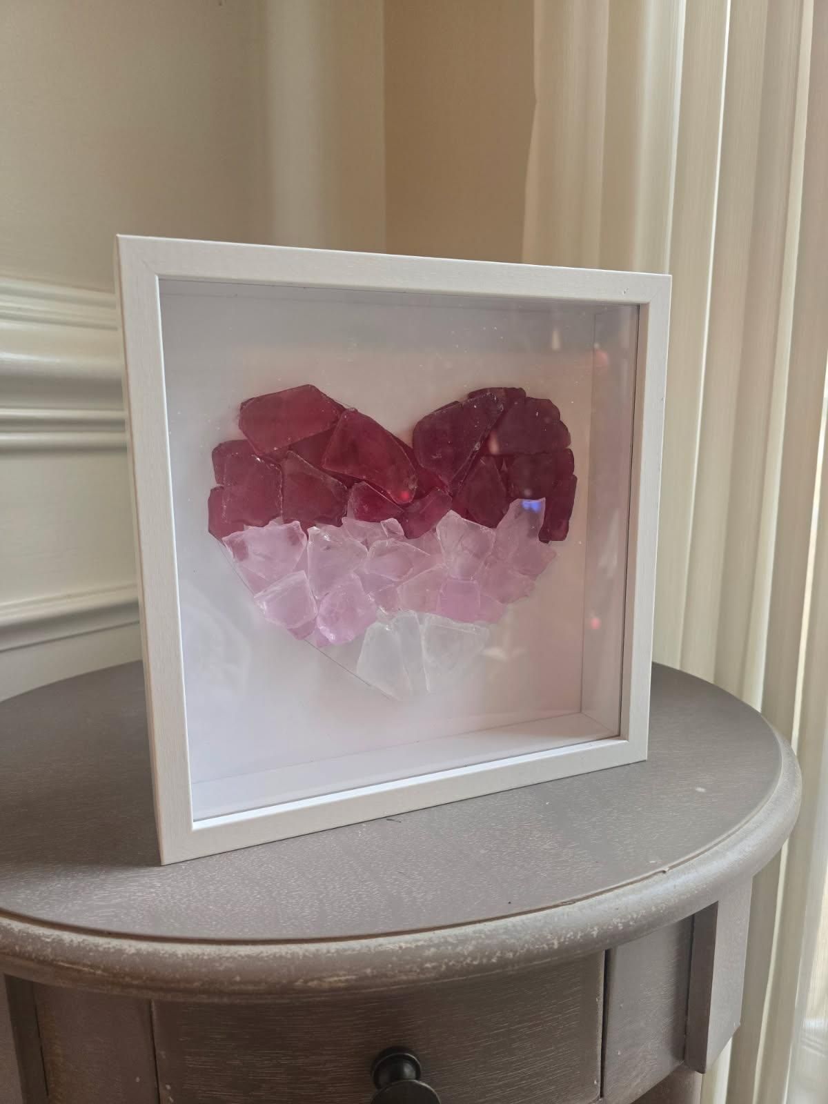 Design a timeless floral heart using soft pink and deep red seaglass, symbolizing love and beauty. Guests will craft a one-of-a-kind framed piece that makes a perfect Valentine’s gift or keepsake.