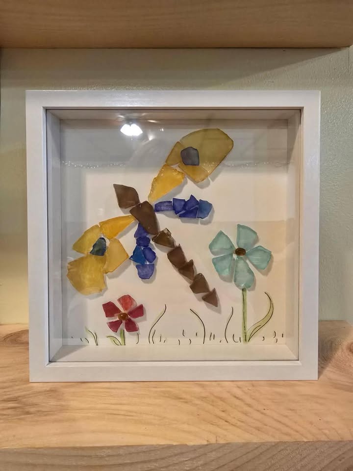 Create a dragonfly with Seaglass and pebbles. All materials included. $55 per person