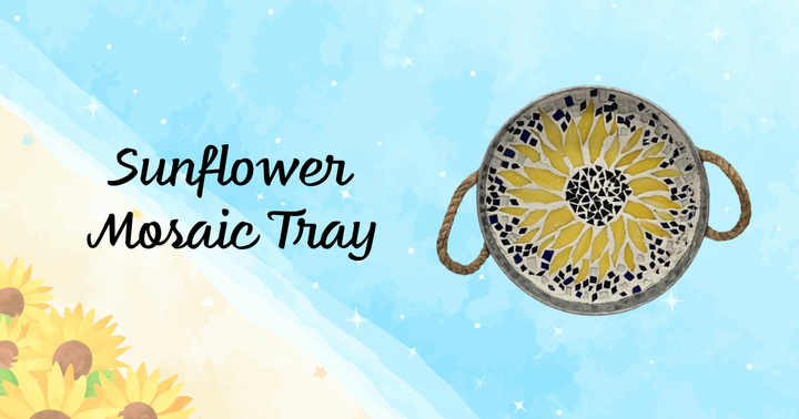 Join us to design your very own sunflower mosaic tray. This will be the tray you get approx. 10″ in diameter. You will choose petals and then design your very own sunflower. Put as many or as little as you like. Or make two sunflowers instead of one. Cost is $70