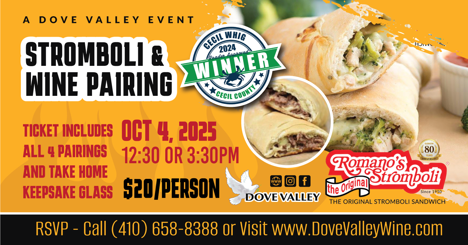 Stromboli and Wine Pairing at 12:30 * Oct.4th