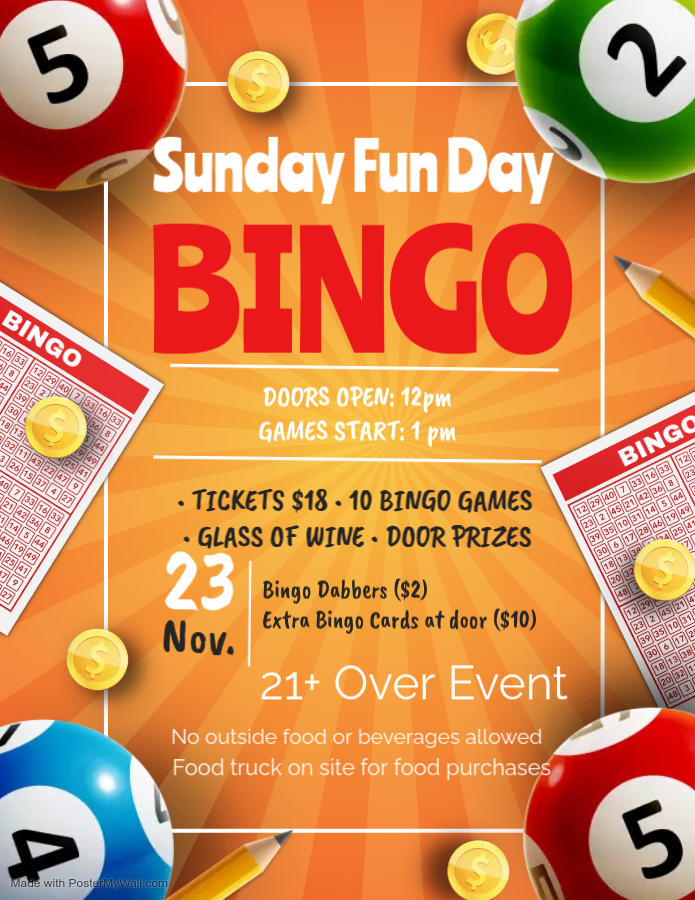 Sunday FUN-day Bingo! * Nov.23rd* Door 12pm/Game 1pm
