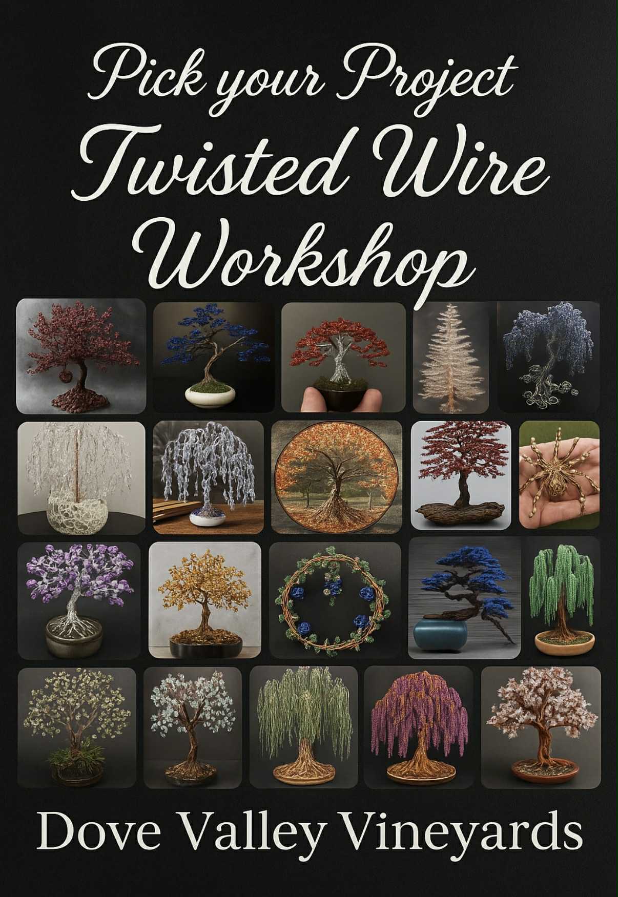 Did you miss one of our favorite workshops this past year? Hereβs your chance to catch up! Join us at Dove Valley Vineyards for an intermediate-level twisted wire experience where you get to pick your own project.