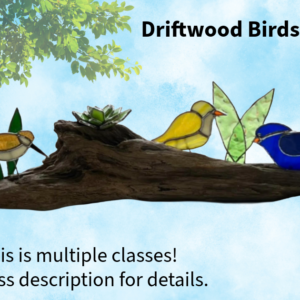 This glass windchime workshop is sure to delight all windchime lovers. Create your very own one of a kind glass windchime, made from sliced wood and tumbled glass. You will pick 30 pieces of tumbled stained glass (lot’s of color choices), drill the holes in your wood slice and assemble your windchime.