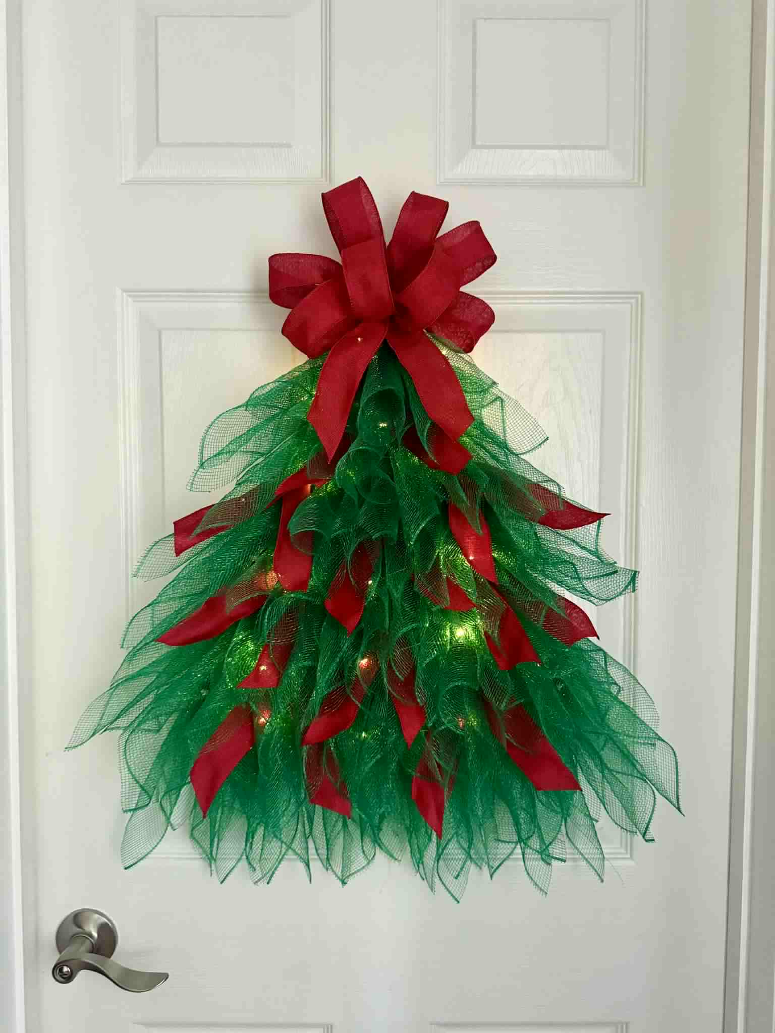 Join Candy in making this Christmas Tree wreath with fairy lights. Measures 24×24. No skills needed. $55 per person